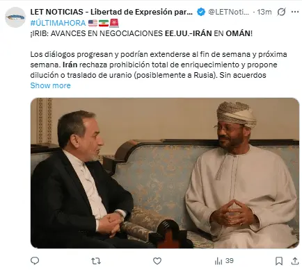 El periódico Times of Israel confirmó que las interacciones entre las delegaciones de Estados Unidos e Irán se están llevando a cabo a través de mediadores omaníes.