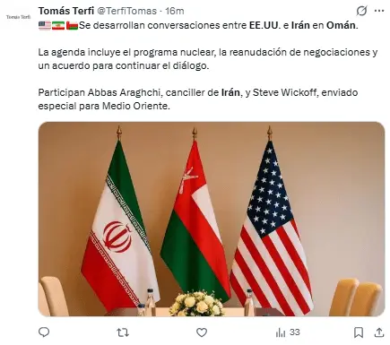 El ministro de Relaciones Exteriores de Irán, Seyed Abbas Araghchi, calificó como «positiva» la atmósfera de las negociaciones indirectas con Estados Unidos celebradas en Mascate, Omán.
