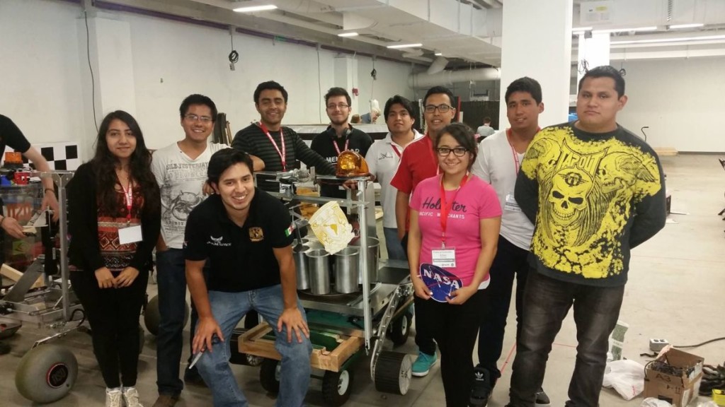 Regeneración, 04 octubre 2016.- Alumnos de la Universidad Nacional Autónoma de México (UNAM) ganaron el Premio Hans von Mulau al realizar el mejor trabajo en equipo dentro de la competencia Sample Return Robot Challenge 2016, de prototipos de máquinas exploradoras de la superficie de Marte.