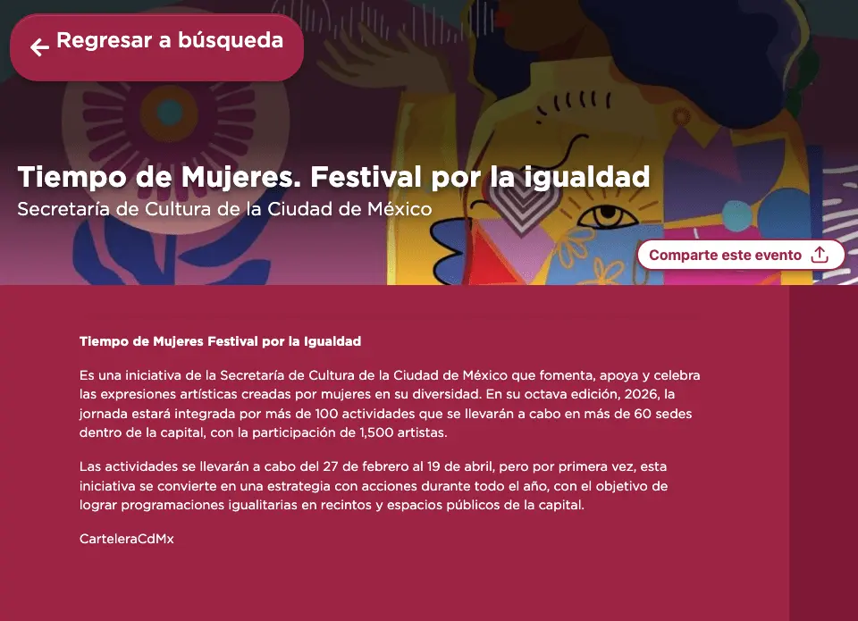 Finalmente, las autoridades de la Ciudad de México mantienen actualizada la cartelera digital. Los ciudadanos pueden consultar más de 700 eventos totales en las plataformas oficiales.