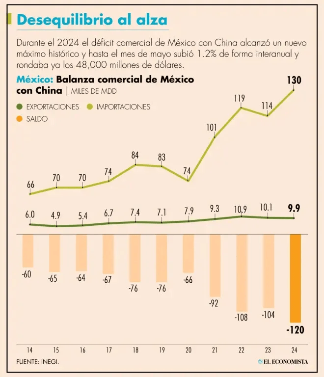 Así como corregir crecimiento del déficit comercial de México con otros países, «máximo que ha sido del 83% en los últimos cinco años».