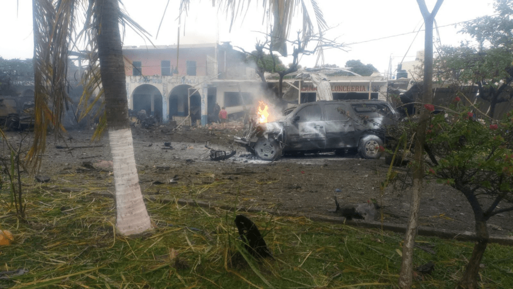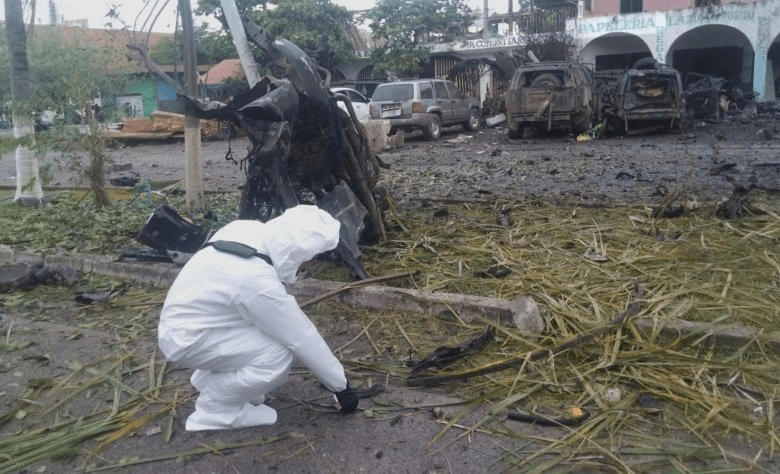 Versiones señalan se investiga si la explosión se trató de un «coche bomba» del Cártel Jalisco Nueva Generación (CJNG) contra la Policía Comunitaria.