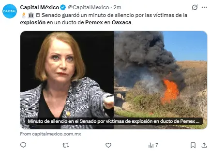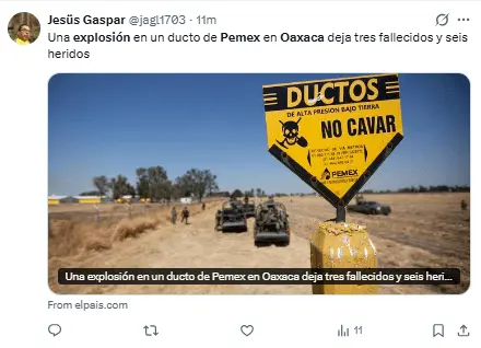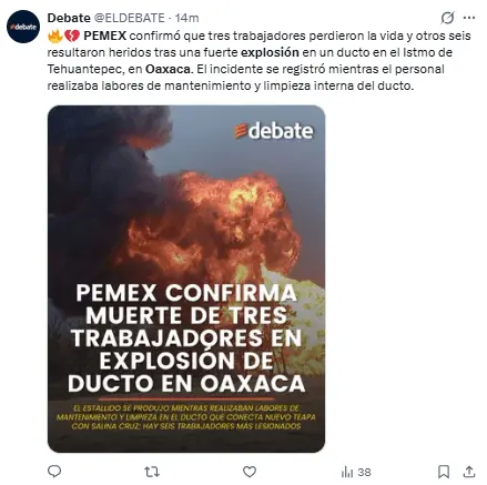 Pemex expresó sus más sinceras condolencias a los familiares y amigos de los trabajadores que, lamentablemente, perdieron la vida a causa de la explosión en el ducto.