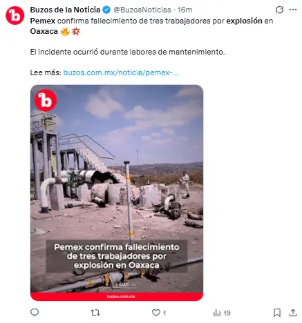 La explosión se ubicó en Loma Larga, municipio de El Barrio de la Soledad, en la región del Istmo de Tehuantepec