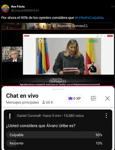 Cabe destacar que el juicio contra Uribe Vélez comenzó formalmente en marzo de 2024, tras años de investigaciones y trámites judiciales.
