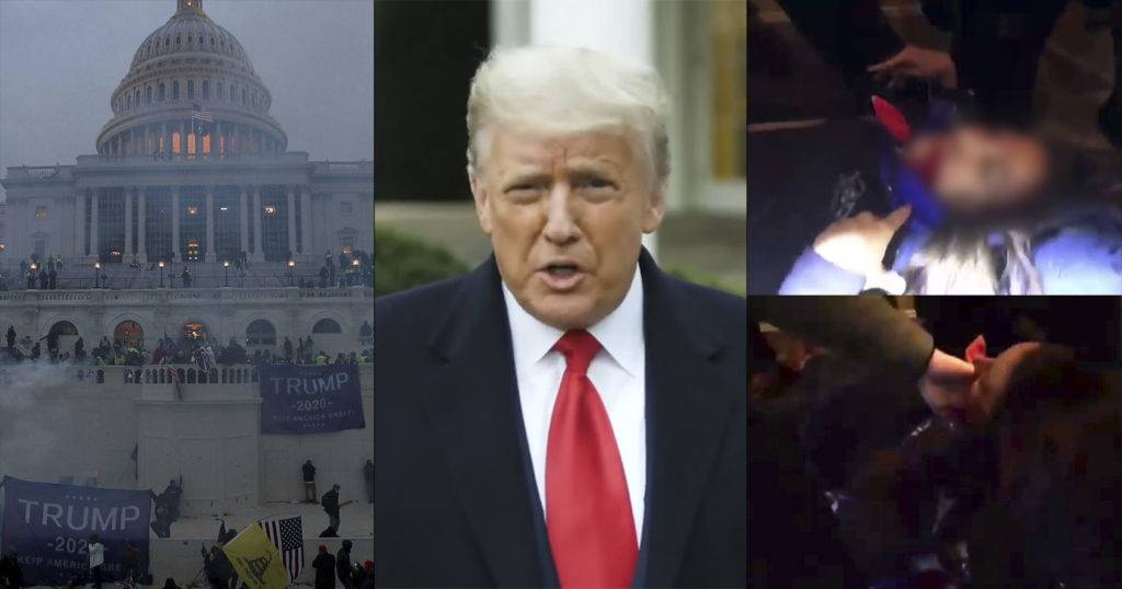 Regeneración, miércoles 6 de enero, 2021. El intento de toma del Capitolio en Washington, Estados Unidos, por parte de manifestantes que intentaban impedir que el Colegio Electoral ratificara la victoria de Joe Biden en la elección presidencial, concluyó con una mujer fallecida. Por Dante García Berlanga, @limpicatto.