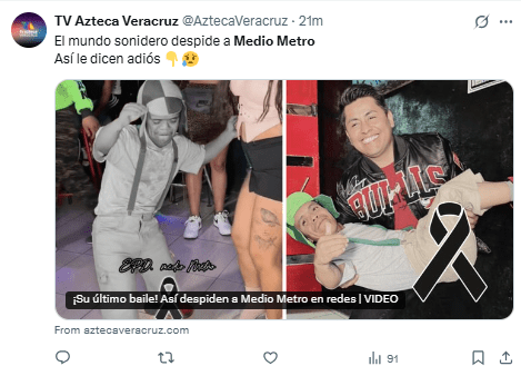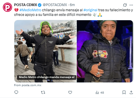 “Lamentamos comunicar a todos nuestros seguidores el fallecimiento de nuestro compañero Medio Metro, nos unimos al dolor que embarga a toda la familia Pineda, descanse en paz”.