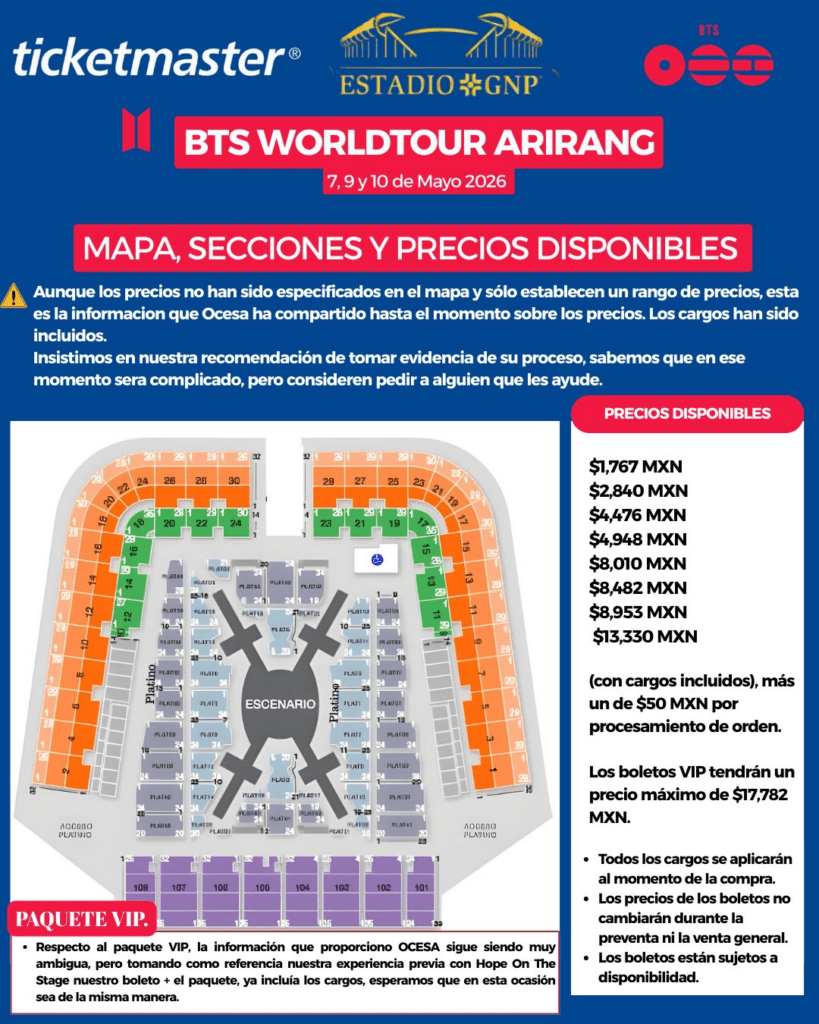 Así, los Armys lograron que Ticketmaster die a conocer los precios oficiales para el estadio GNP.