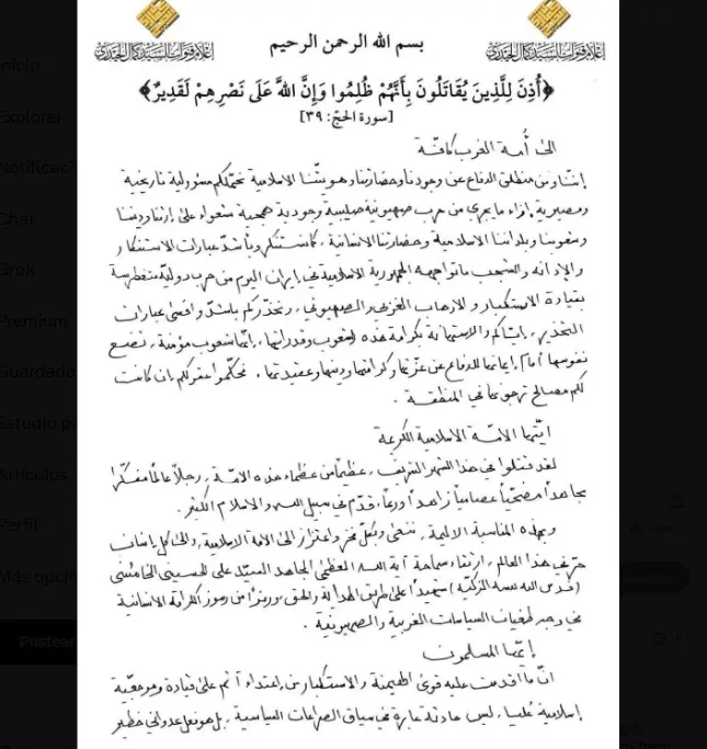 Dicha fracción chiíta en Irak, Siria, Líbano y Yemen ahora tiene autorización teológica para atacar objetivos estadounidenses e israelíes. El documento llama a tod el mundo islámico a movilizarse