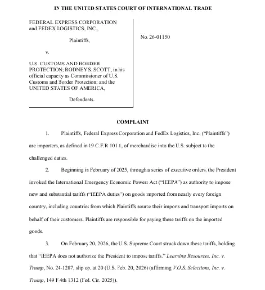 Fedex interpuso acción civil en la Corte Internacional del Comercio en Nueva York. Devolución de recien anulados aranceles «recíprocos»