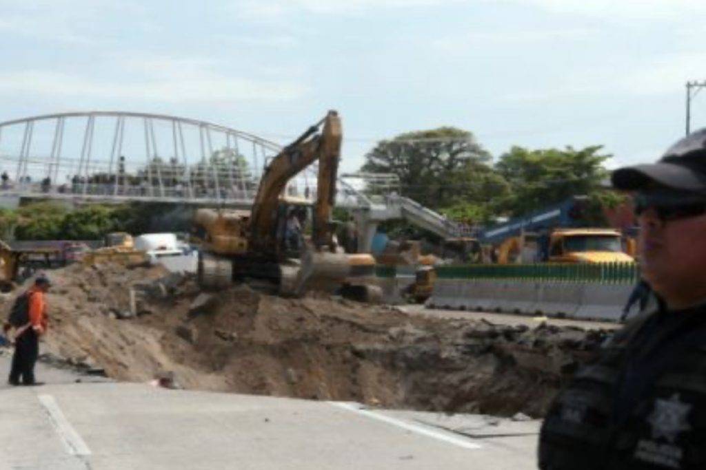 La SCT argumentó que el hundimiento se dio por una alcantarilla tapada por una enorme cantidad de basura.