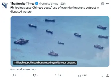 “Queremos recalcar que el uso de cianuro en el banco de arena de Ayungin es una forma de sabotaje que busca acabar con las poblaciones de peces locales.