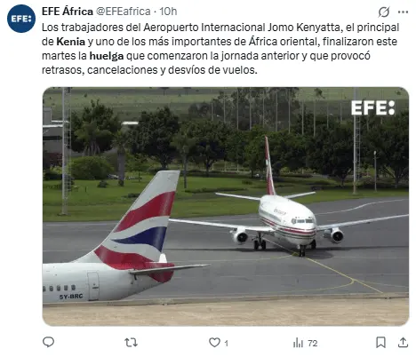Finaliza huelga de relevante aeropuerto de Kenia en su 2º día