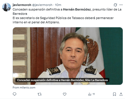 Bermúdez Requena, quien dirigió la Secretaría de Seguridad de Tabasco durante la gestión de Adán Augusto López…