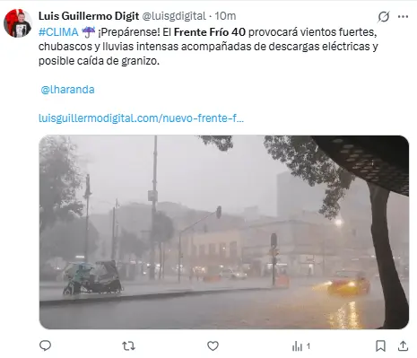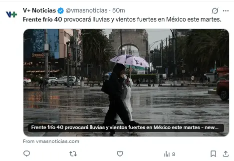 Según el pronóstico oficial, se anticipa que durante la tarde del miércoles este sistema entre a Texas, Estados Unidos, dejando de impactar en el país.