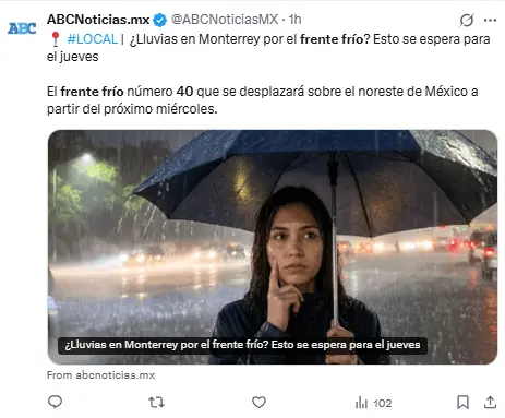 Este fenómeno causará vientos intensos, lluvias con tormentas eléctricas y una posible caída de granizo en Coahuila, Nuevo León y Tamaulipas.