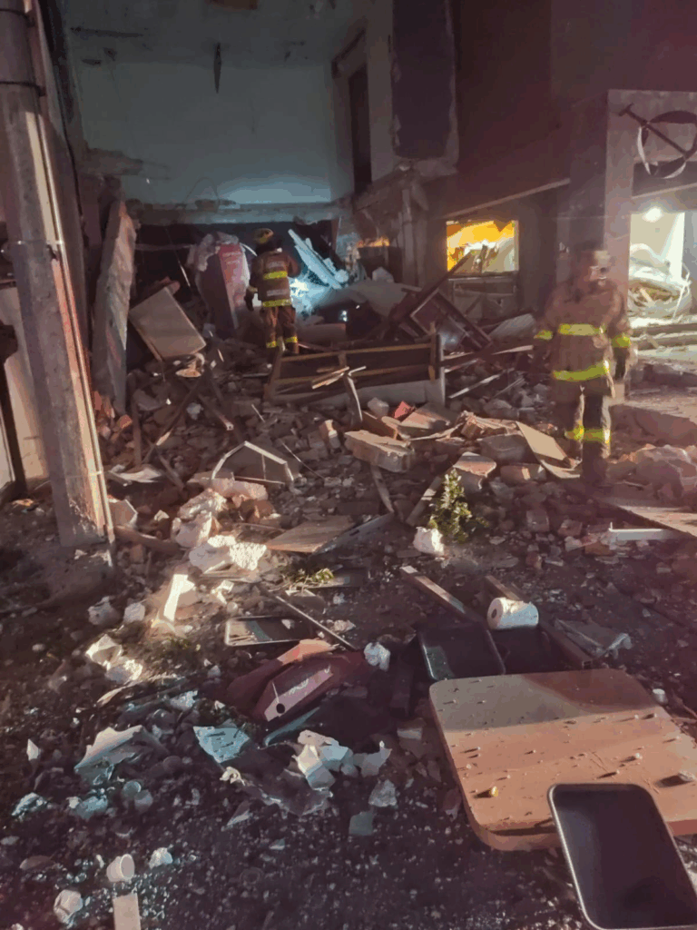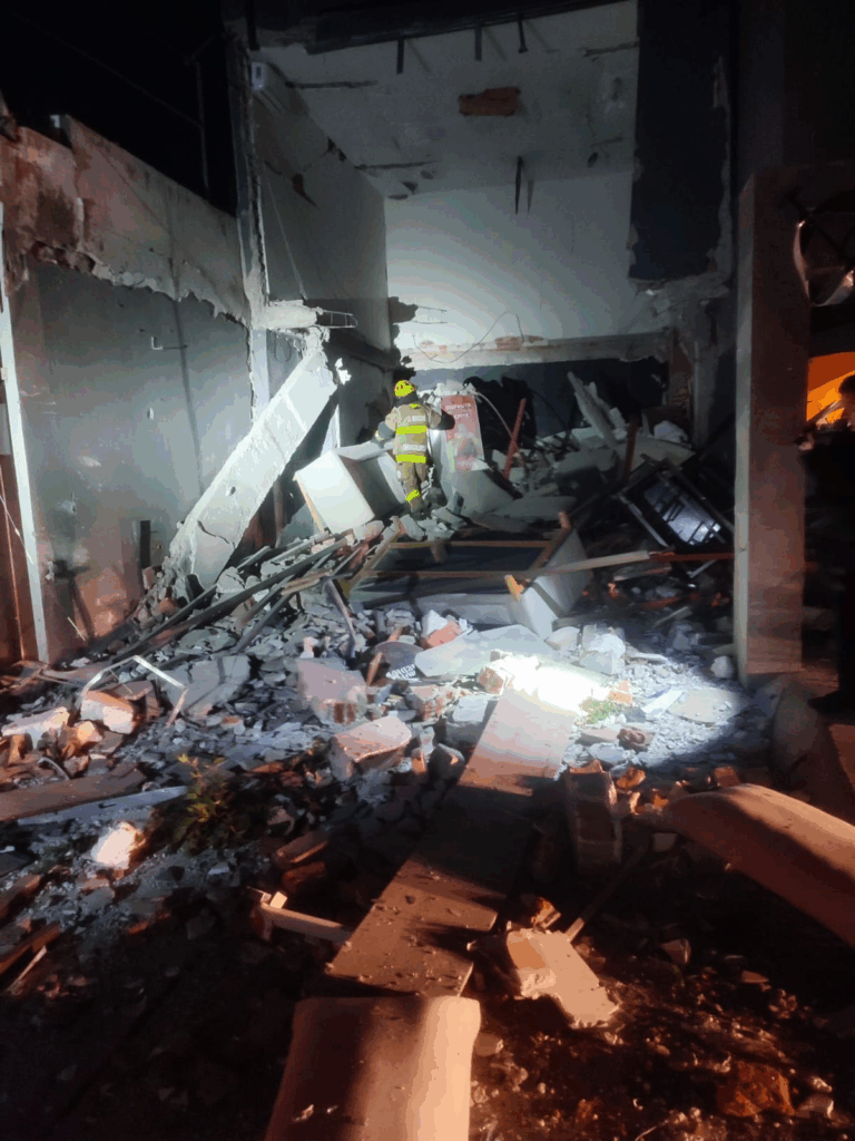 Al llegar, encontraron dos locales de venta de alimentos seriamente dañados, uno de ellos completamente colapsado.