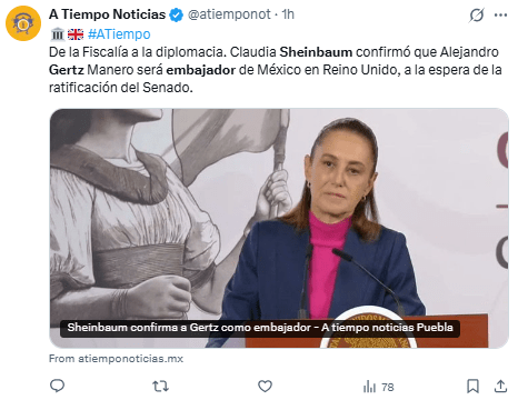 Gertz Manero aún requiere la aprobación del Senado para ser formalmente asignado como representante en el Reino Unido: Sheinbaum
