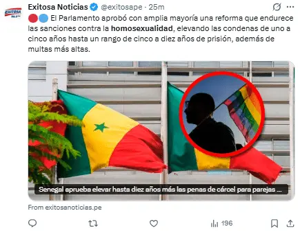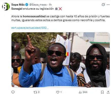Regeneración, 13 de marzo 2026– El Congreso de Senegal aprobó el miércoles un cambio legal que aumenta las penas relacionadas con la homosexualidad y agudiza la represión contra activistas, grupos y miembros de la comunidad LGTBI+.