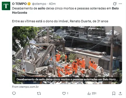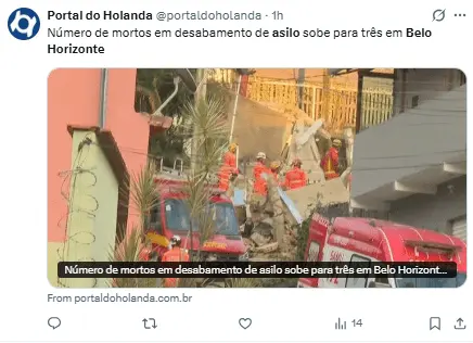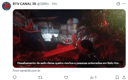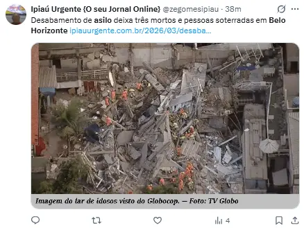 Regeneración, 5 de marzo 2026– Un colapso en una casa de ancianos en Belo Horizonte, Minas Gerais, Brasil, dejó al menos dos fallecidos, mientras los bomberos llevan a cabo el rescate de diez personas más que se encuentran entre los restos.