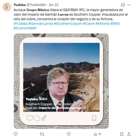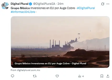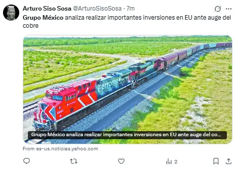 «La noticia es positiva para Grupo México, ya que está en línea con la estrategia de la empresa.