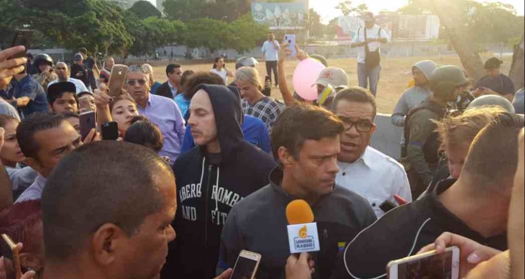 Regeneración, 30 de abril 2019.Esta madrugada, grupos de la oposición sacaron al dirigente político Leopoldo López de su arresto domiciliario, con apoyo de un reducido grupo de militares.