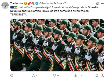 La Unión Europea decidió catalogar a la CGRI como grupo terrorista, ante la represión y la presión de Estados Unidos