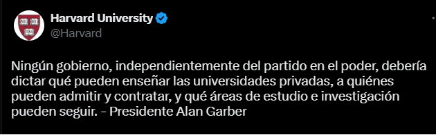 «Esta acción de represalia amenaza con causar un daño grave a la comunidad de Harvard y a nuestro país, y socava la misión académica y de investigación de Harvard».