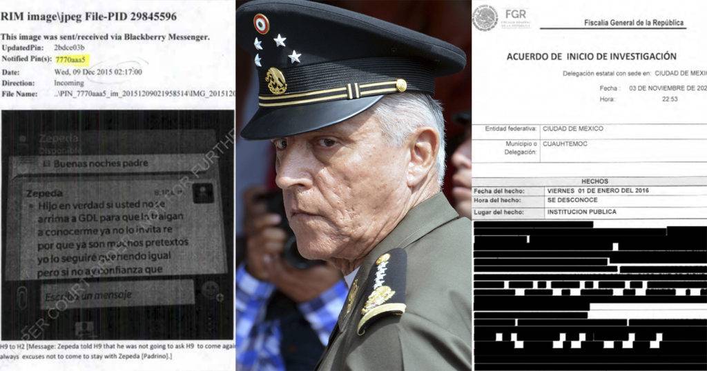 El primer documento se puso a disposición del público el viernes 15 de enero. Se trata del expediente que conformó la DEA en Estados Unidos para detener a Salvador Cienfuegos. Se trata de una serie de mensajes y capturas de pantalla de un teléfono BlackBerry alrededor de un personaje denominado «El Padrino Zepeda«.