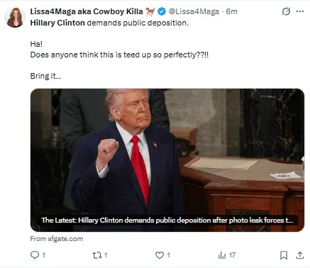 Con anterioridad, Clinton acusó al comité de citarla para distraer la atención y encubrir las actividades de Trump, debido a su evidente relación con Epstein.