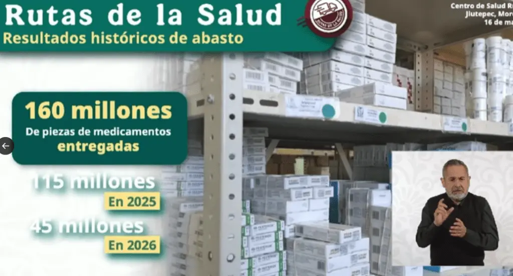 Además, informó que con las Rutas de la Salud se han entregado 160 millones de piezas de medicamentos. Es decir, 115 millones en 2025 y 45 millones en lo que va de 2026.