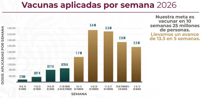 El subsecretario de Integración Sectorial, Eduardo Clark García, señaló que, con la estrategia nacional de atención al sarampión, desde el 12 de febrero se han aplicado 13.3 millones de vacunas.