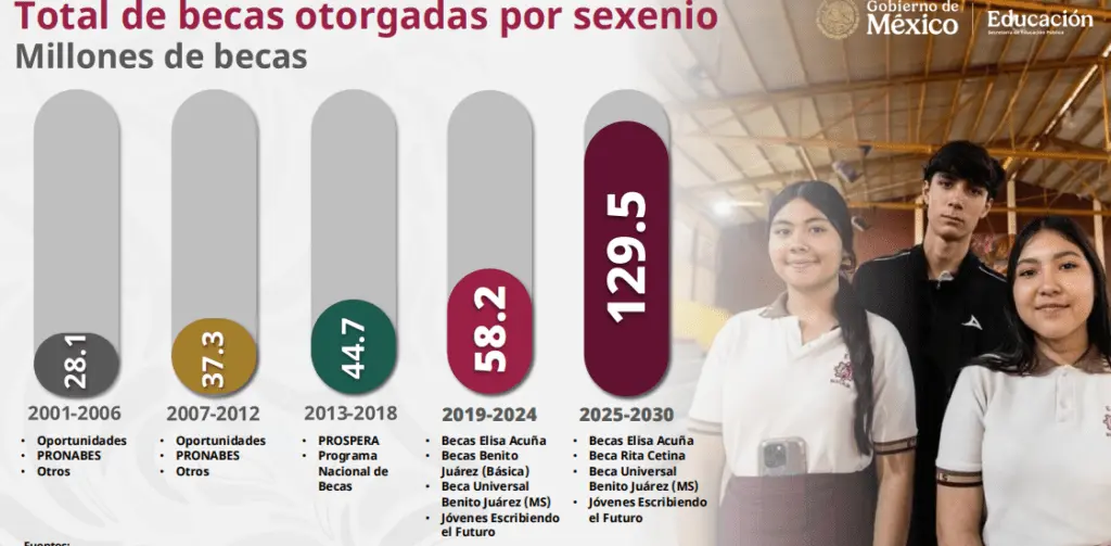 Y es que estima que con ello serán entregadas 129.5 millones de becas a estudiantes