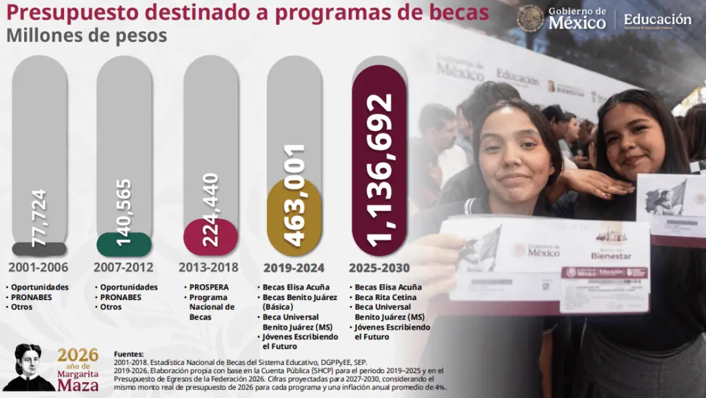 Misma que beneficia a 7 millones 201 mil estudiantes; la Beca Universal Rita Cetina para Educación Básica a 8 millones 216 mil 801.