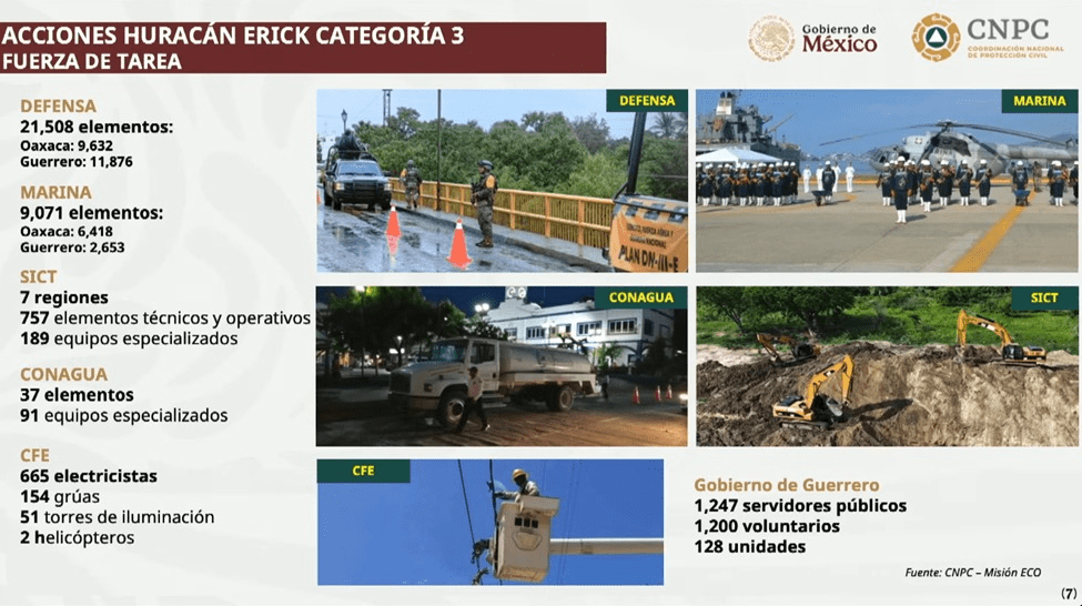 Ante el huracán Erik, se detalló el despliegue de 21 mil 508 elementos de la Secretaría de la Defensa Nacional.