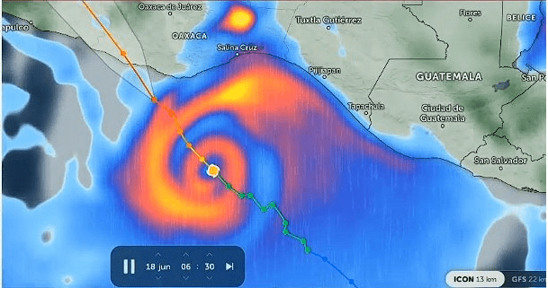 Regeneración, 19 de junio de 2025. Hasta el momento, continúan los efectos del huracán Erick con lluvias y vientos en 14 municipios de Oaxaca y en 6 de Guerrero.