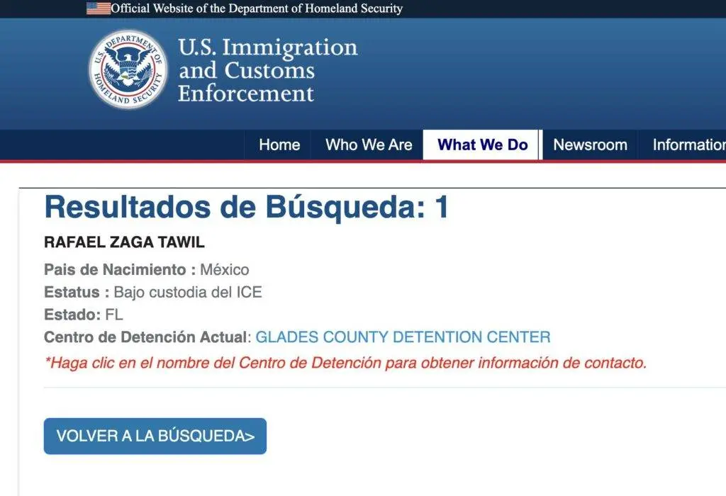 Regeneración, 13 de abril de 2026.– El Servicio de Inmigración y Control de Aduanas detuvo al empresario Rafael Zaga Tawil en el estado de Florida.