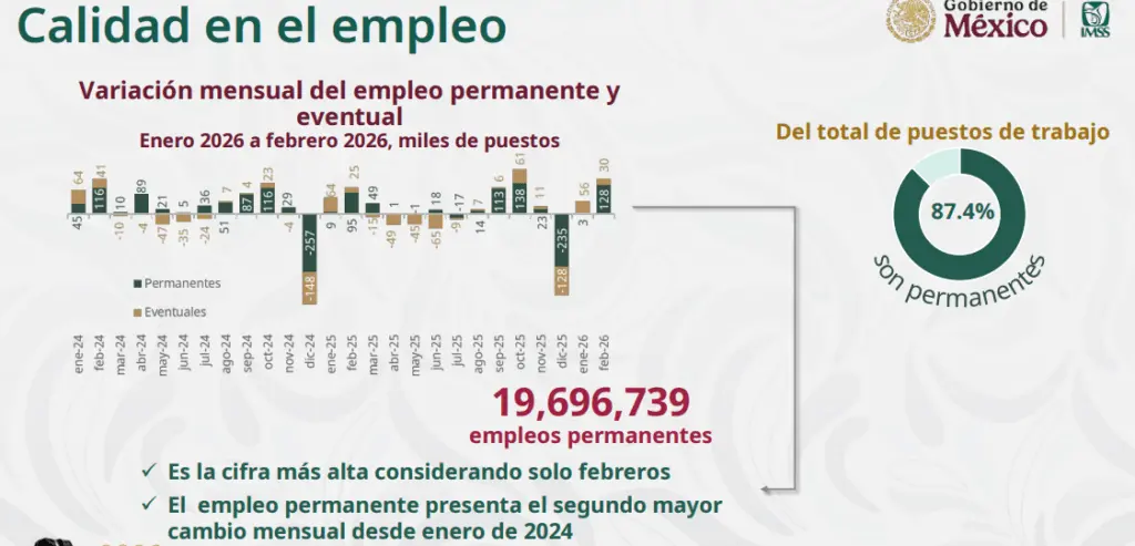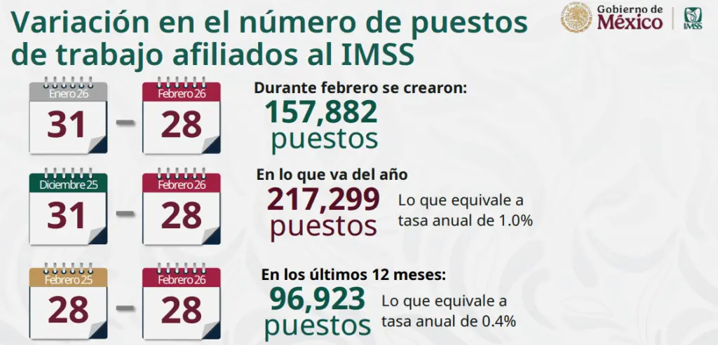 Este es el empleo tradicional, el que se registra en el IMSS, sin considerar lo que se está procesando en plataformas, que se dará a conocer el próximo lunes 9 de marzo.