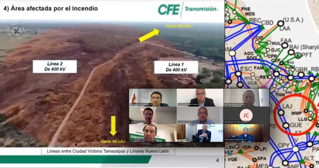 El Frente Frío 23 trajo consigo un incendio debajo de una línea, en 30 hectáreas de pastizaje en el municipio de Padilla, de acuerdo con el informe de los directivos de la CFE. Este hecho fortuito entre Tamaulipas y Nuevo León desencadenó una secuencia de eventos que provocó la falla de energía.