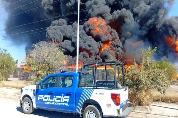 Fuerte Incendio en Industria Vidriera del Potosí en San Luis Potosí. Autoridades reportan evacuación masiva y control parcial