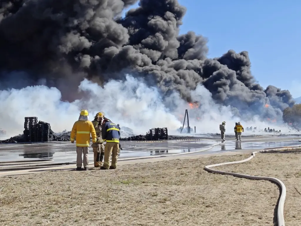 Múltiples dependencias estatales y municipales trabajan arduamente para sofocar el fuego en la planta industrial.