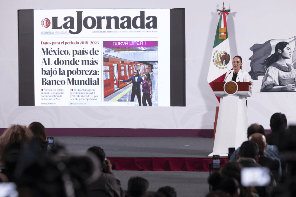 Regeneración, 24 de abril de 2025. La presidenta destacó la posición de México como líder en el combate a la pobreza en el informe que dio a conocer el Banco Mundial.
