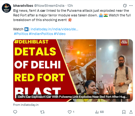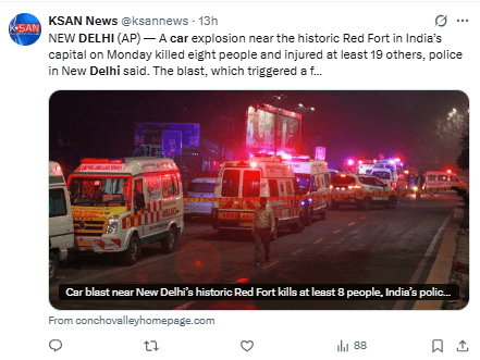 Regeneración, 11 de noviembre 2025– Un coche bomba explotó este lunes en una parte histórica de la capital de India, provocando la muerte de al menos 10 personas e hiriendo a muchas otras, lo que llevó al líder del país a prometer que llevará a los responsables ante la justicia.