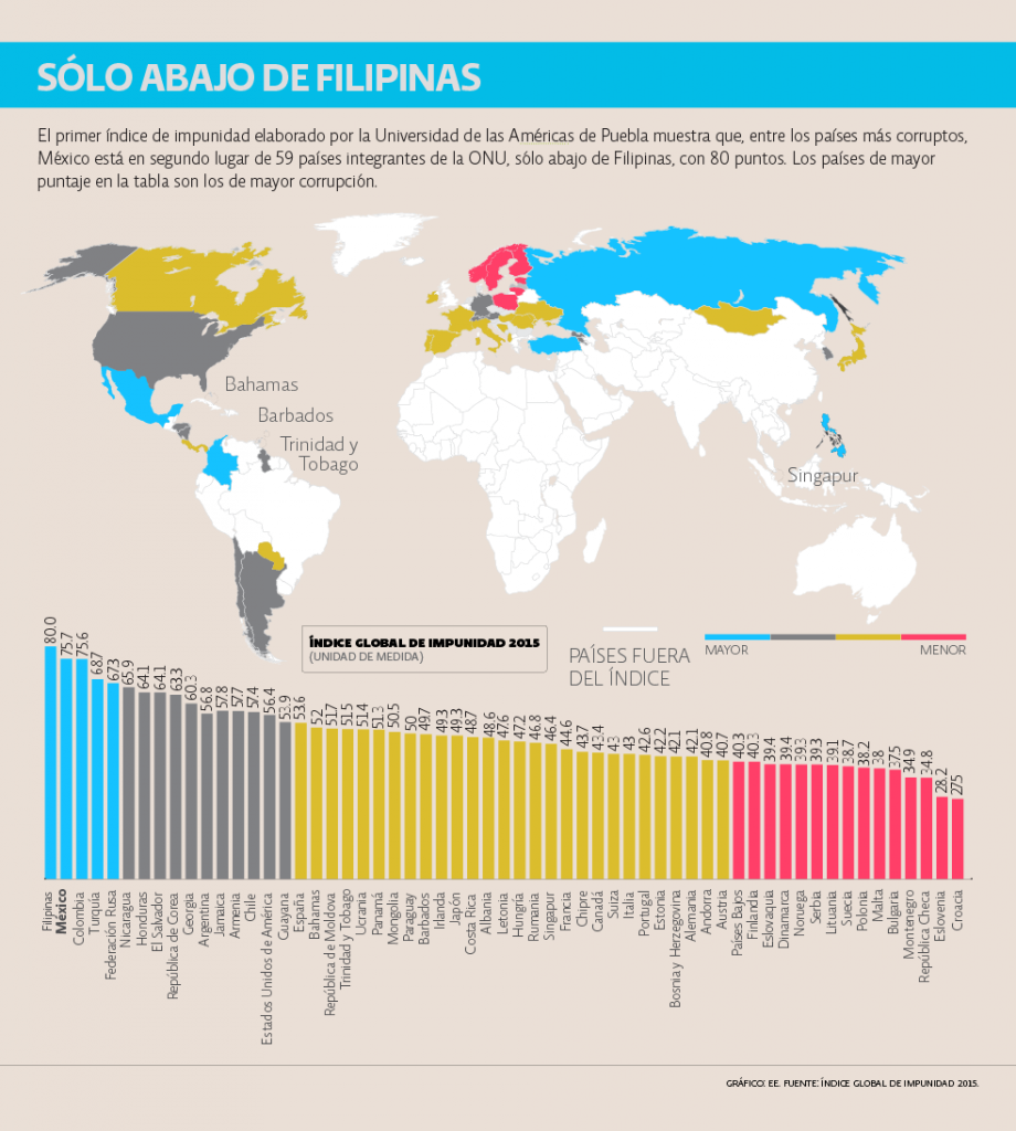 Le Clerq refirió que a escala mundial los países de Europa del este mostraron los menores índices de corrupción, Croacia en primer lugar. De igual forma detalló que al analizar la región de América Latina el estudio arrojó que México, Colombia, Nicaragua, Honduras y El Salvador son los países de la región con los peores niveles de impunidad, donde además, la correlación con la corrupción es directa.