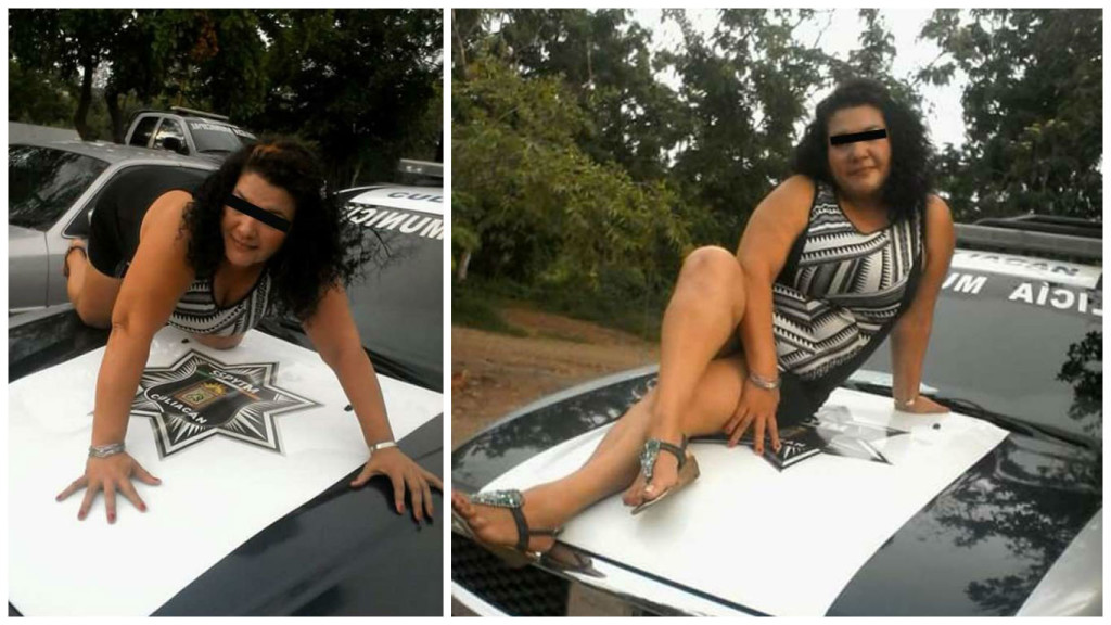 Regeneración, 6 de septiembre del 2016.- El periódico Debate de Sinaloa difundió las imágenes de una mujer que aparece posando encima de una patrulla de la Policía Municipal de Culiacán. Supuestamente la unidad se encontraba en la sindicatura de Villa Juárez, Navolato, pero pertenece al municipio de Culiacán.