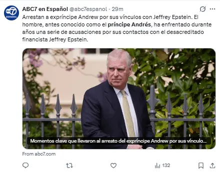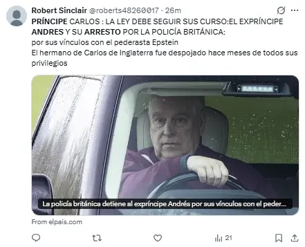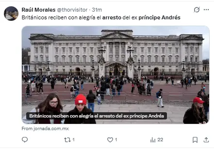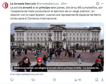 Regeneración, 19 de febrero de 2026 – Andrés Mountbatten-Windsor, quien es el hermano del rey británico Carlos III, fue arrestado este jueves en Norfolk, al este de Inglaterra, bajo la sospecha de haber cometido mala conducta en un cargo público, de acuerdo a la cadena pública BBC.