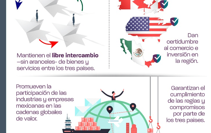 Reglas de origen: Modifica las reglas sobre la procedencia de los productos, especialmente en la industria automotriz, para fomentar que un mayor porcentaje de los componentes se fabriquen en Norteamérica.
