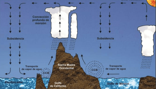 Se caracteriza por un cambio estacional en la dirección de los vientos, que transportan aire cálido y húmedo desde el Océano Pacífico y el Golfo de California hacia el continente.