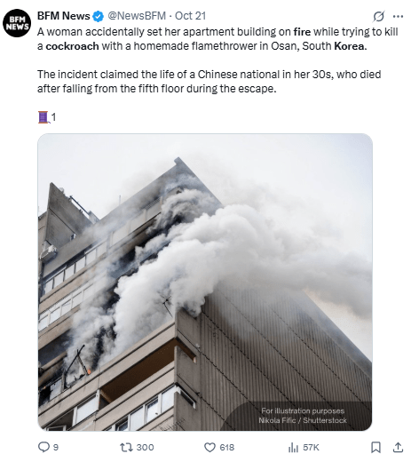 Una madre logró poner a salvo a su bebé de dos meses. Después quiso escapar por la ventana, cayó al vacío y falleció: Corea