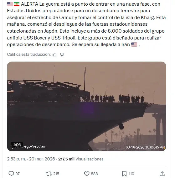 Regeneración, 20 de marzo de 2026. En redes destacan que Irak tiene colmados los almacenes de petróleo ante la imposibilidad de cruzar el estrecho de Ormuz, por lo que detuvo la producción de campos concesionados a extranjeros.